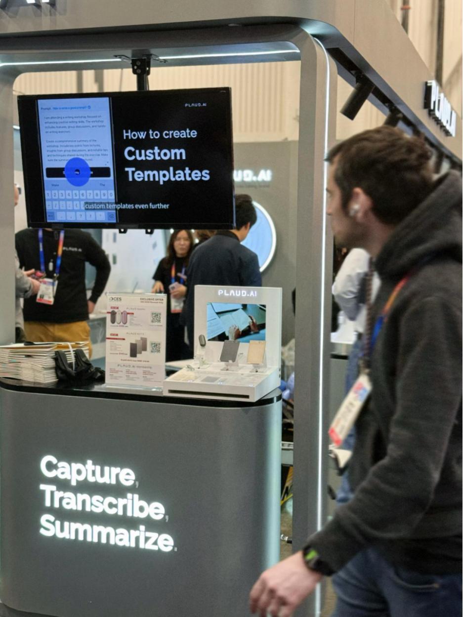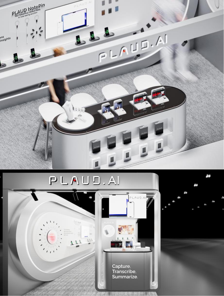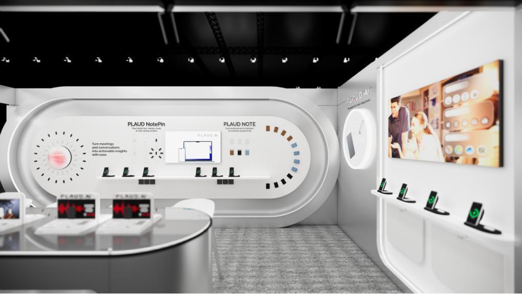 inDare与PLAUD.AI携手在2025美国CES展中,以高科技感展台,在有限的条件下,设计通过简洁、现代感强的结构以及互动体验的融合,展示PLAUD.AI的高端技术实力与创新理念。